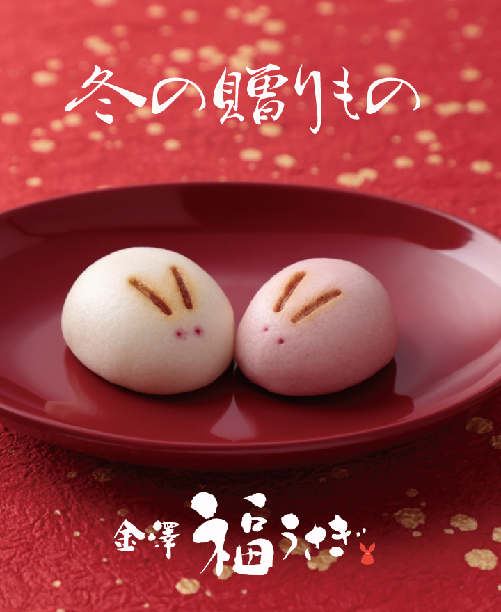 金澤銘菓「福うさぎ」はうさぎをかたどった小さな蒸し饅頭です。ふんわり・もちもち生地と共に風味豊かな味わいと可愛らしい形をお愉しみください。