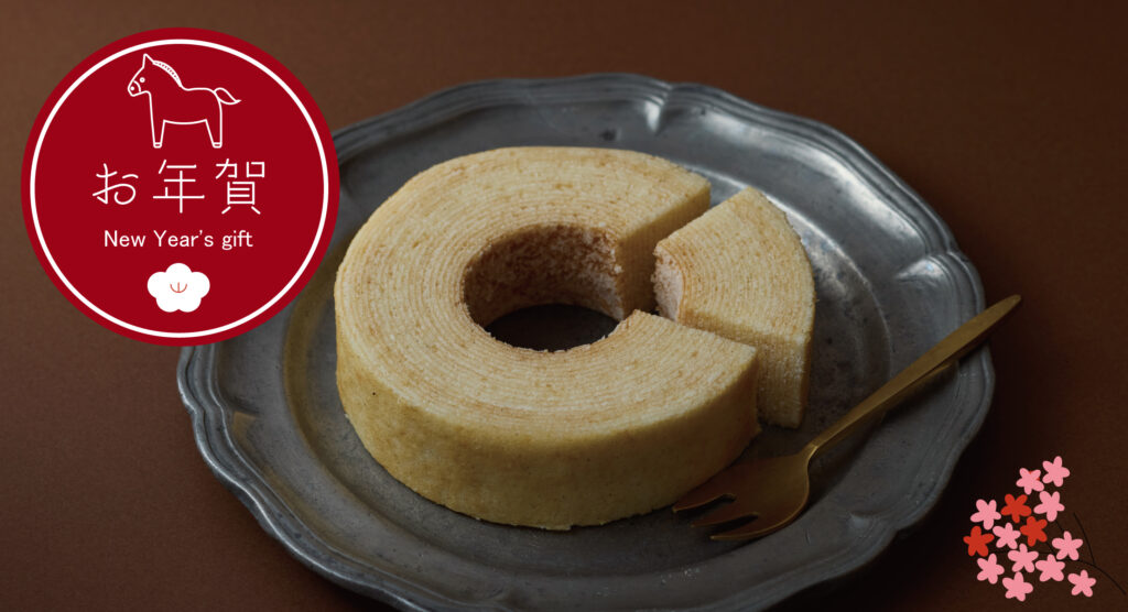 こだわりの米粉だけを使用した、グルテンフリーのバームクーヘンです。しっとり、モチモチとした食感と、米粉ならではの上品な甘みが特徴。 「年輪」を重ねるバームクーヘンは、末永いお付き合いを願う贈り物として定評があります。洗練されたパッケージ(お箱)が、新年の装いに華を添えます。