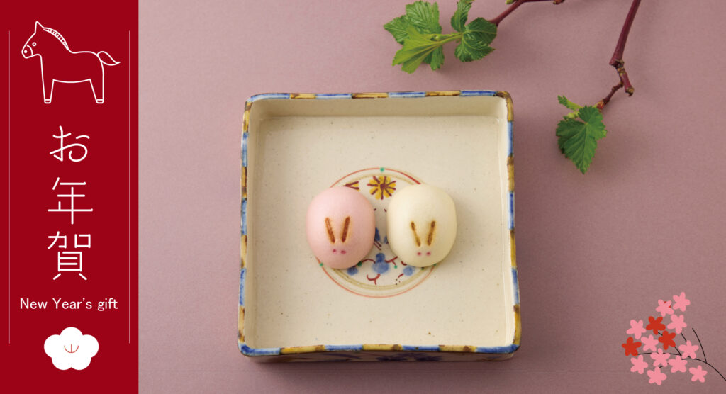 石川県産の素材にこだわった、見た目にも愛らしい蒸し饅頭です。五郎島金時や能登大納言、棒茶など、金沢・石川の風土を感じる5つの味わいを詰め合わせました。 うさぎは「跳躍」を意味する縁起物。一年のさらなる飛躍を願う新年のご挨拶にぴったりです。